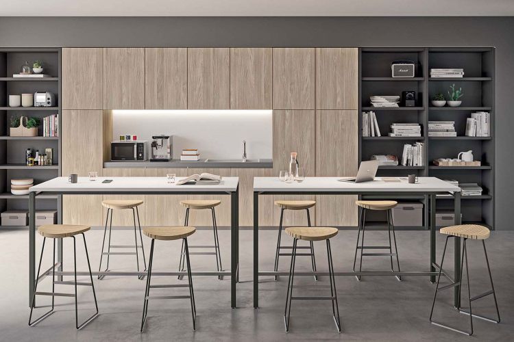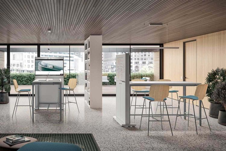 Mobiliario que permite al usuario no solo compartir, sino también configurar su día activamente, a pesar de la naturaleza sedentaria típica del entorno de la oficina. La mesa Creo, incorpora los cánones de la colección Idea + 01, se adapta a los entornos de la oficina para reuniones y actividades colaborativas
