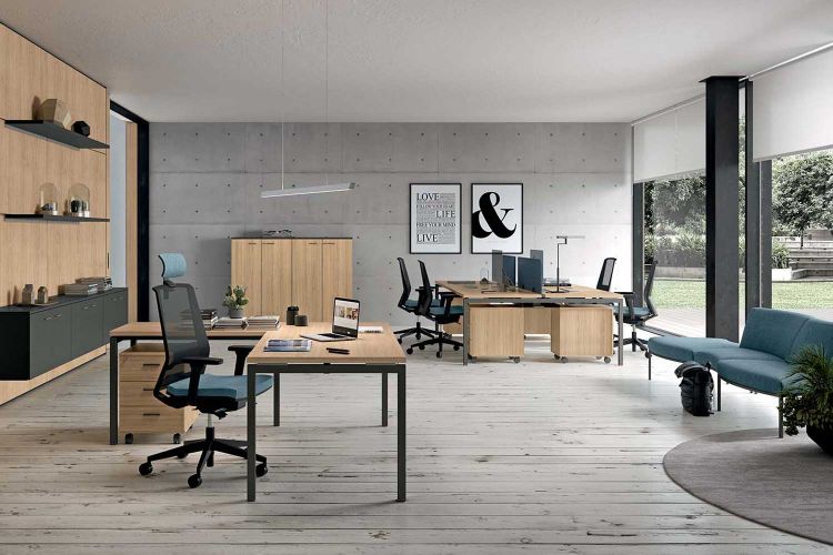 Una nueva dimensión para las mesas con box operativo integrado de puertas corredereas. Puestos de trabajo riguroso pero al mismo tiempo personalizados, para favorecer el trabajo. Puestos individuales o dobles en bench con tapas abatibles que permiten el acceso al cableado de los puestos de trabajo.