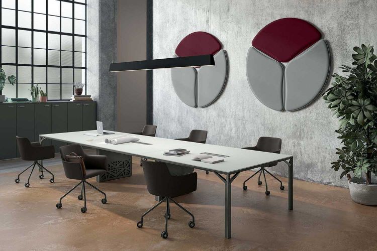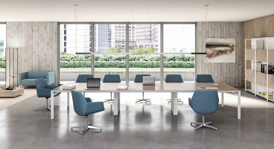 La intercambiabilidad de las estructuras y de los sobres permiten adaptar la mesa de juntas a las distintas necesidades estéticas y funcionales.