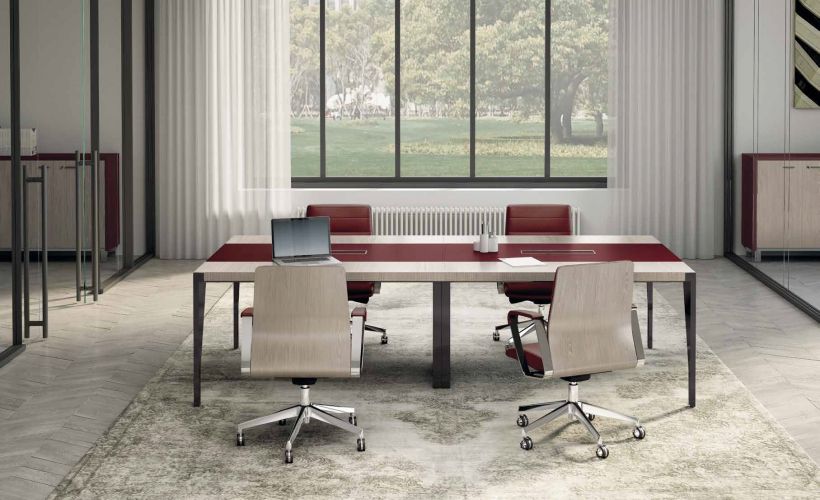La intercambiabilidad de las estructuras y de los sobres permiten adaptar la mesa de juntas a las distintas necesidades estéticas y funcionales.