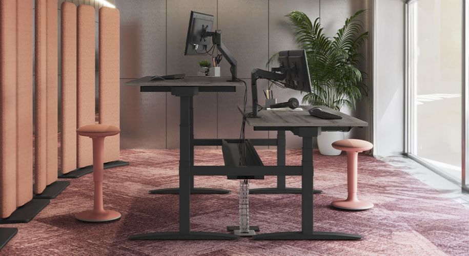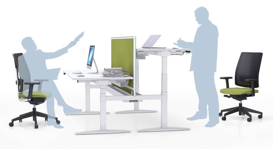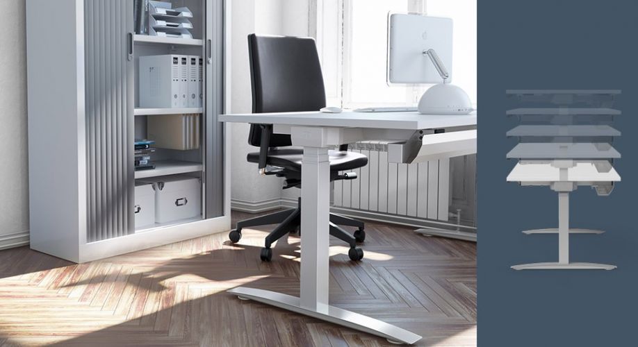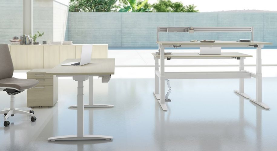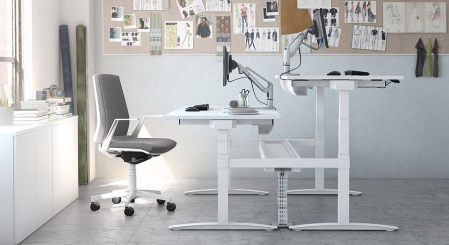 ERGONOMÍA Y FLEXIBILIDAD UP es una serie de mesas regulables en altura que permite trabajar sentado o de pie según las necesidades individuales, fomentando el bienestar de sus usuarios.