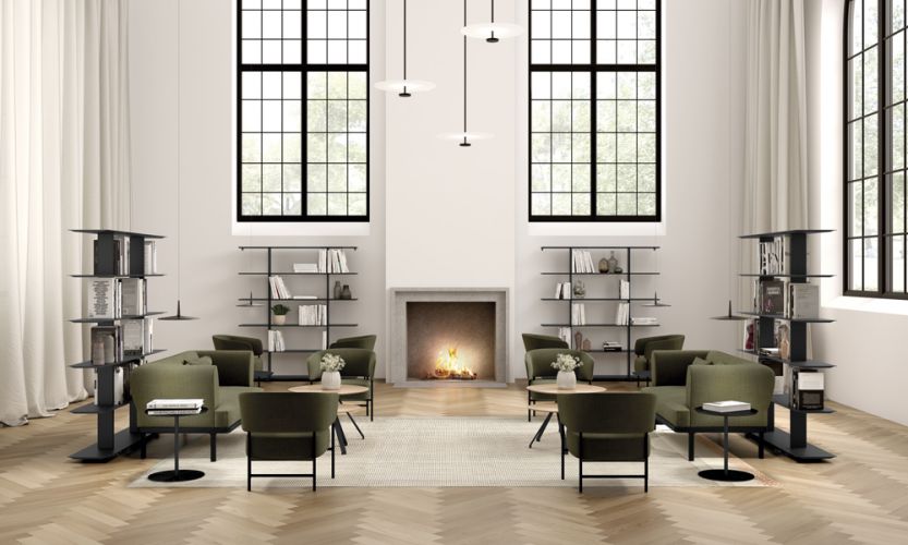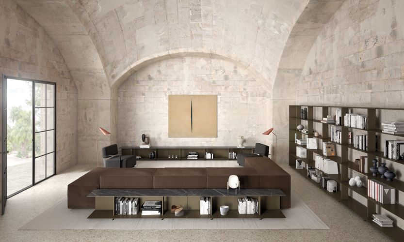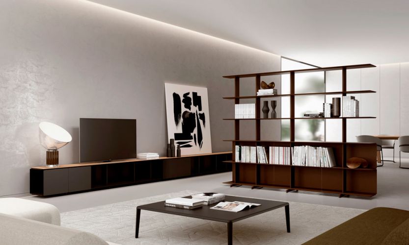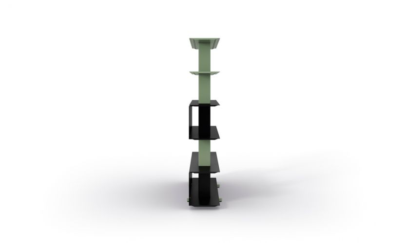 Estantería modular freestanding de 1600 mm de ancho. Los estantes, de ángulos redondeados, tienen embellecedores en ambos extremos que ocultan el interior del perfil. Las versiones de hasta tres estantes de altura llevan bases de 250 mm. Para garantizar la estabilidad, a partir de cuatro estantes lleva bases de 420 mm que pueden ocultarse con un embellecedor. Es posible integrar paneles deslizantes de 400 mm y 800 mm, en posición frontal o posterior. Combinable con el resto de las estanterías de la colección Wing. La altura máxima recomendada es de siete estantes.