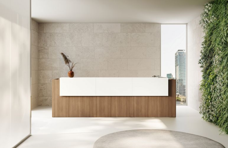 El mostrador de recepción Point se inspira en criterios de rigor formal plasmados en módulos versátiles que se pueden combinar entre sí. La sencillez de su composición y su estilo minimalista generan infinitas combinaciones, con diferentes formas y tamaños, que se adaptan a cualquier contexto.