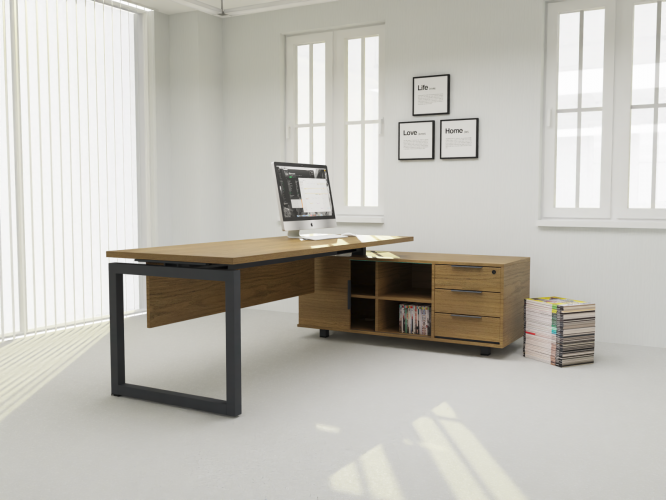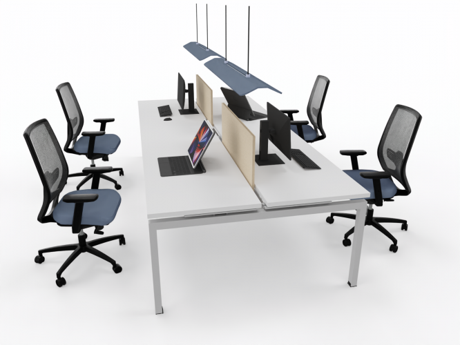Mesas serie Q-BOK compuesta de tapa en melamina de 30mm de grosor, canteadas en ABS de 2mm y aristas redondeadas de 2 mm en todo su perímetro, de alta resistencia al impacto. Tapa completamente mecanizada para su montaje en estructura metálica