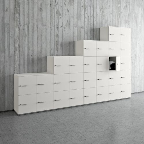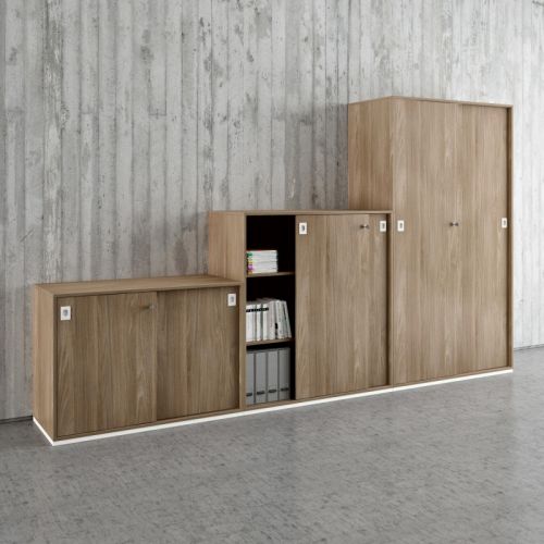 Están disponibles varios tipos de armarios, con cuerpo en metal o en melamina, de puertas batientes o correderas para responder a toda exigencia funcional y estética.