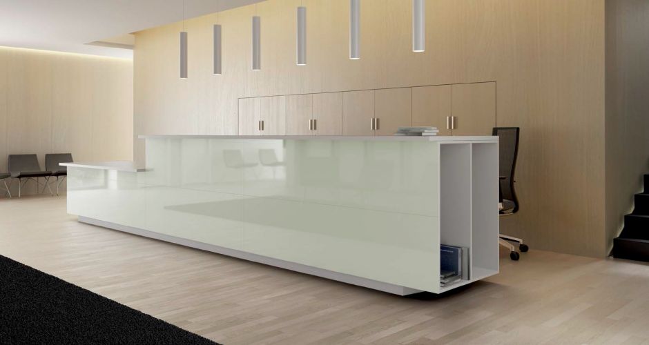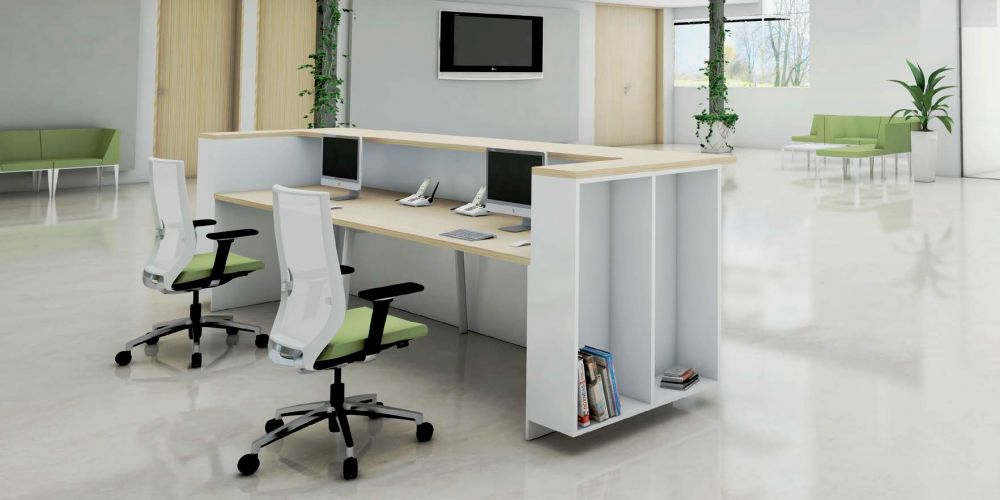 En sintonía con el estilo natural y sencillo de las líneas de M10, el mostrador dispone de diferentes materiales y acabados y 2 alturas